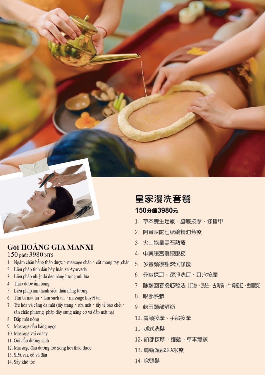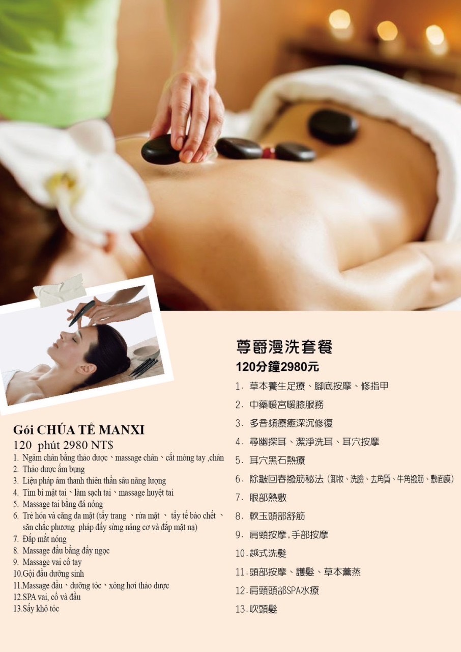 採傳統越式洗髮手技,結合頸肩按摩與頭皮刮痧,促進頭皮血液循環,減輕肩頸壓力,帶來全身放鬆感。